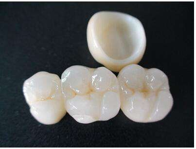 烤瓷牙:烤瓷牙瓷粉经过高温烧结熔附于金属内冠表面而形成的全冠修复体。金属烤瓷冠目前临床使用较多的全冠修复体,兼有铸造金属全冠机械强度好和美观的优点,是一种成熟的修复体。但金属烤瓷冠的金属内冠不透明,需要用不透明瓷遮盖,影响修复体的透明度,让金属烤瓷冠看起来颜色呆板。